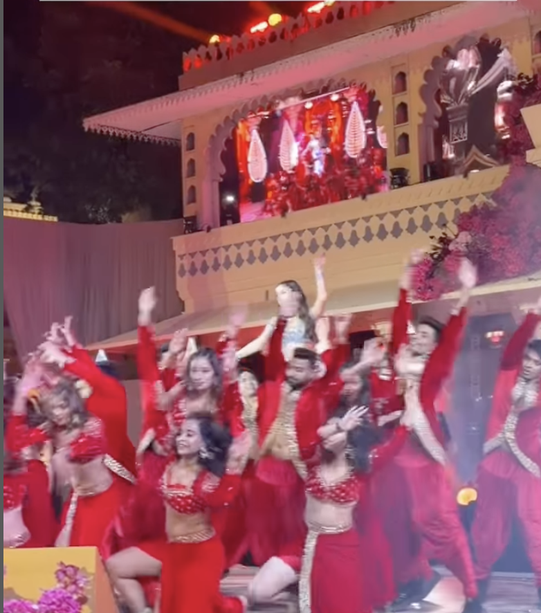 据报道,这场婚礼整整狂欢了三天,周五晚上办音乐晚会,周六上午办涂抹姜黄仪式,周日上午举行婚礼仪式,晚上办婚宴,乌代浦尔变成了一个超级派对现场。