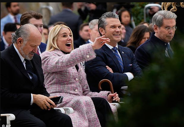 现场包括国防部长皮特·海格塞斯、司法部长帕姆·邦迪在内的多位官员都被逗笑。