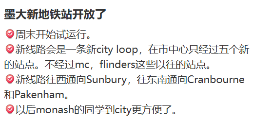 不少人盼星星盼月亮,从入学修到毕业的墨大门口的新地铁站Parkville,本周末正式开始试运行。
