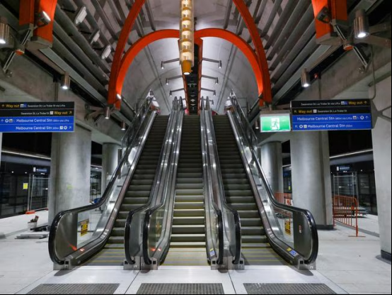 它与Melbourne Central互通,深达42米(比Marvel Stadium还“高”),是墨尔本最深的地铁站,配有全城最长的自动扶梯,长达42米,比议会站的还多出12米。