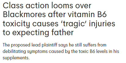 早在今年7月,Blackmores就已经被卷入这场因维生素B6中毒引发的集体诉讼。