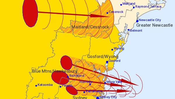 下午,一场强雷暴自西向东席卷悉尼及Central Coast、Hunter等大片区域。