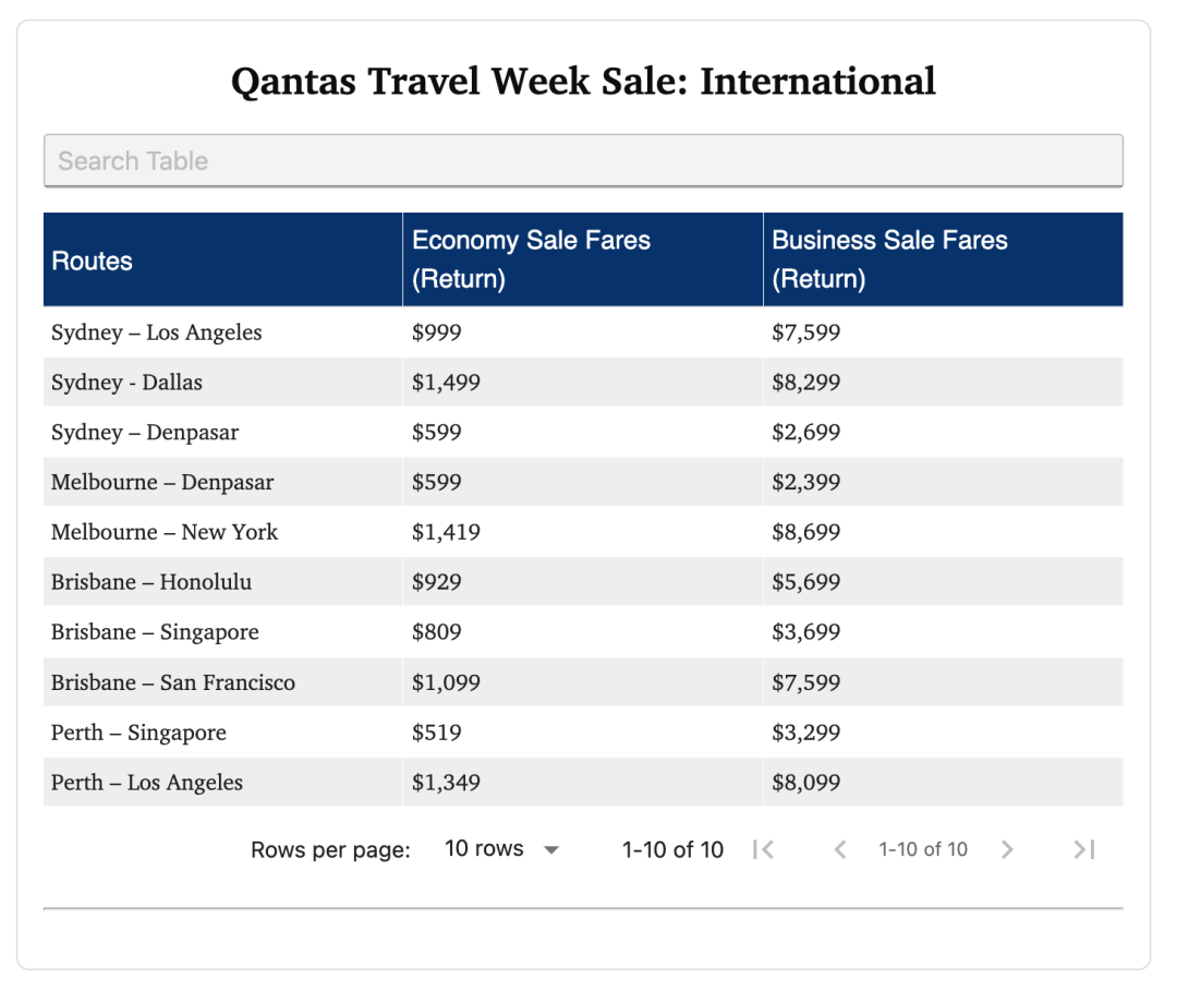 今年 Virgin 还首次把 Economy X(加长腿部空间座位)也纳入促销范围,对经常飞短途国际的旅客来说吸引力更大。随着两大航空公司几乎同步开打年末“价格战”,业内预期未来几周机票搜索、预定量都将再度飙升。具体航班价格请移至官网查看。