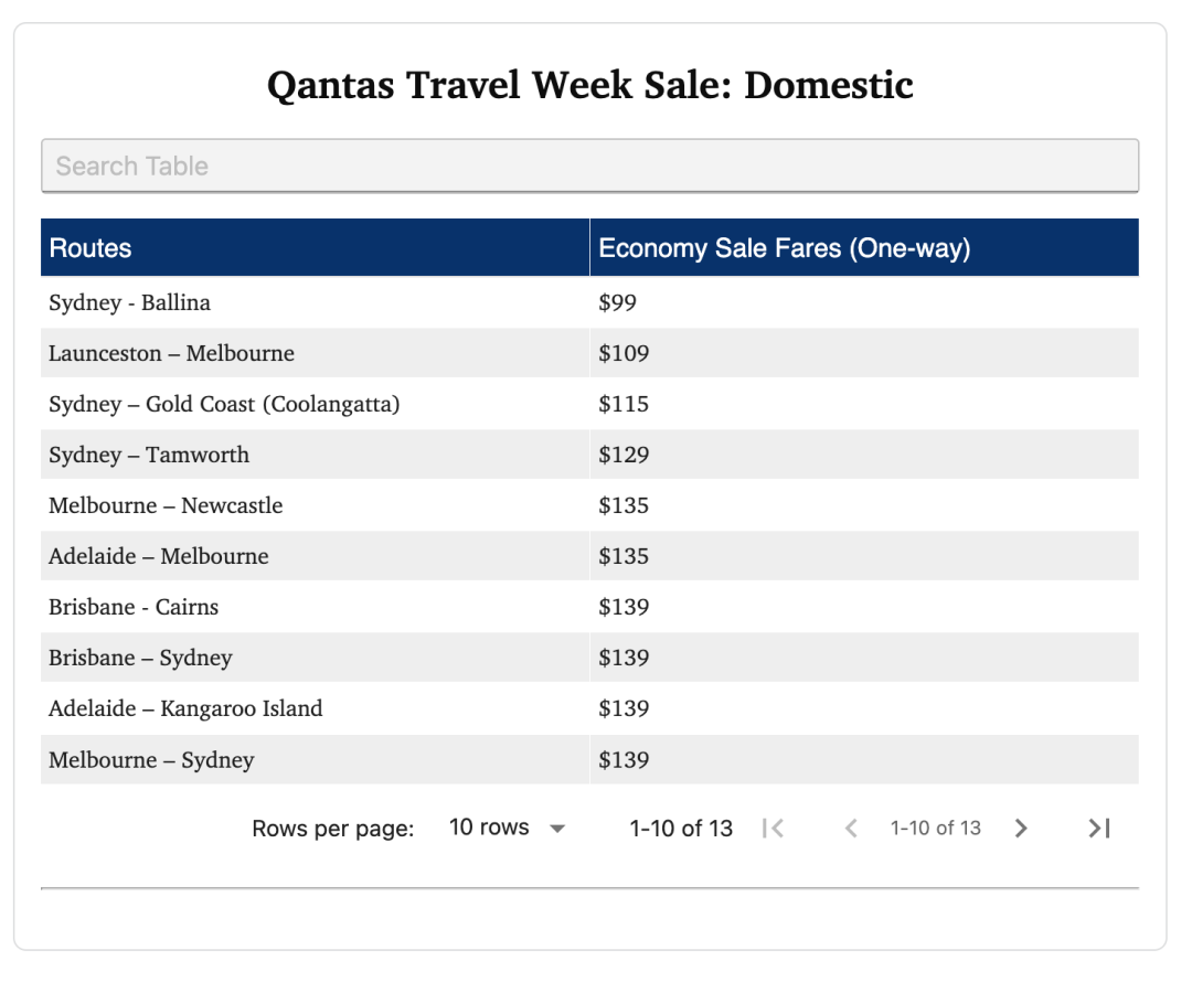 如果只想在国内走走,折扣同样覆盖热门假期州际航线,例如悉尼至 Ballina 单程 $99、布里斯班至凯恩斯 $139,墨尔本至悉尼同样只需 $139。Qantas 表示,今年澳洲旅客在体育、音乐、文化活动刺激下,对美国航线需求特别旺,国内方面,南澳、西澳、塔州及东海岸海滨目的地的机票搜索量也在持续攀升。所有特价票将持续到 12 月 2 日晚 11:59(AEDT),售完即止。