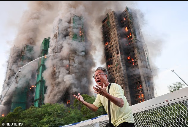 这场大火发生于26日下午2时51分,地点为大埔宏福苑。