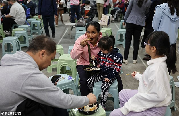 到了晚上,庇护中心里已经有不少家庭在地上坐着等消息,有人哭到说不出话来,有人一直在打电话确认家里老人、小孩是否安全。