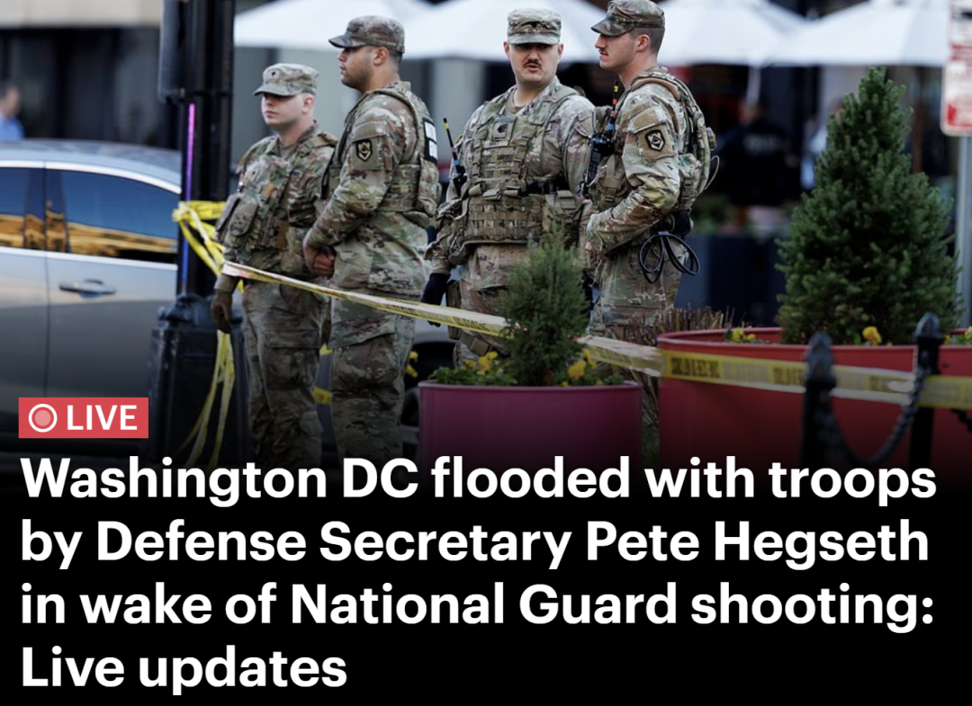仅在过去这4个月,华盛顿似乎正在变成“准战区”,白宫外刺杀事件、国会山大规模抗议、白宫近距离枪击,现在连国民警卫队都被伏击,让不少美国人都担心起人身安全问题。