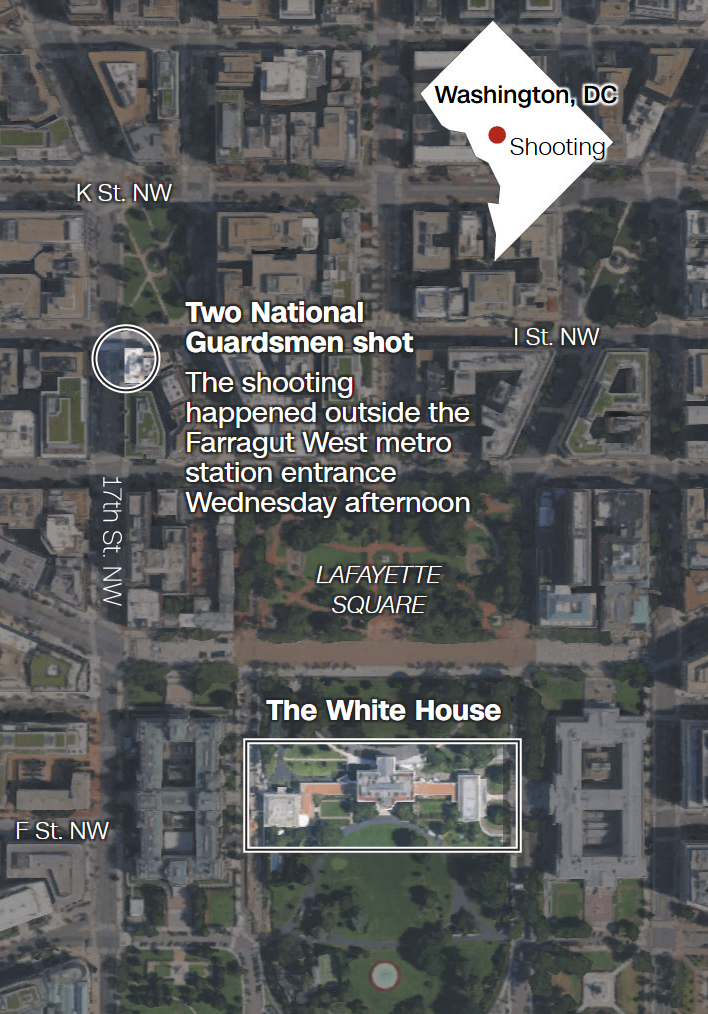根据最新消息,枪案发生在美东时间下午2点30分,距离白宫仅两个街区的Farragut West地铁站附近。