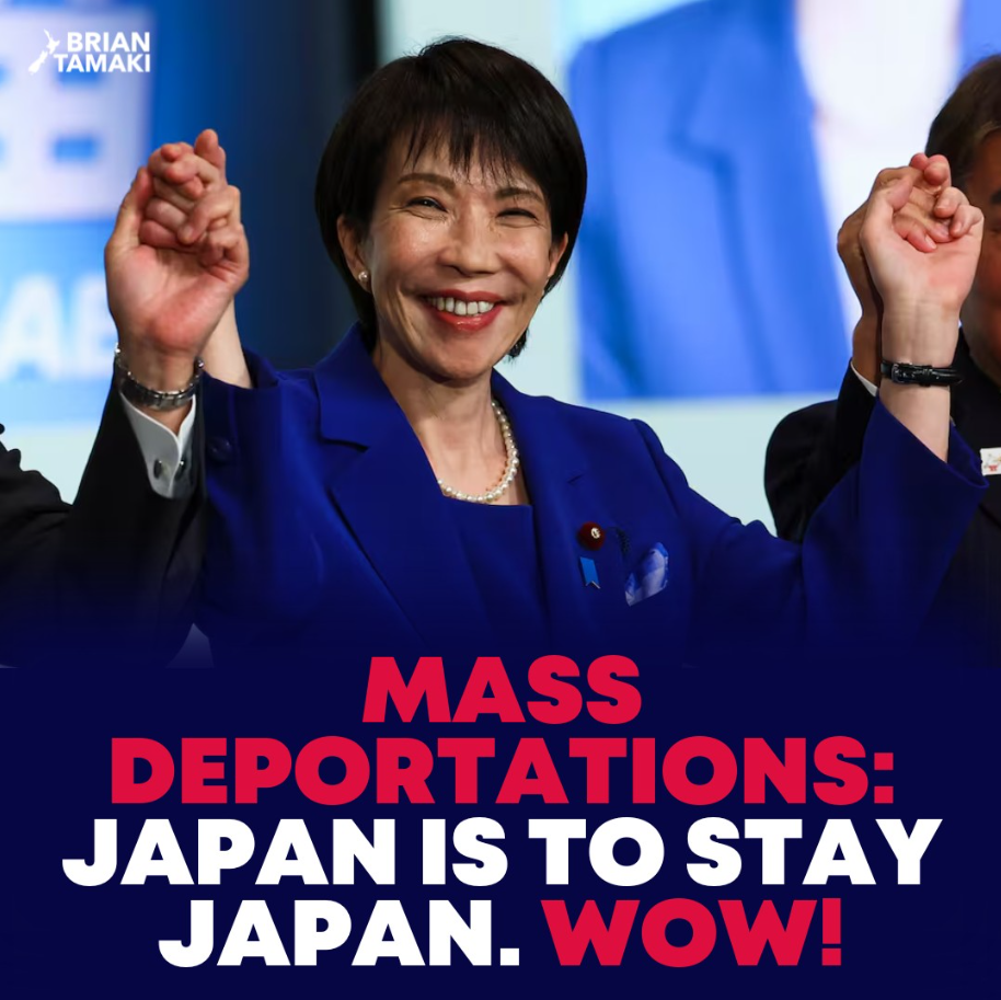在社媒上,Tamaki对全球不少极右翼政府表示支持。
