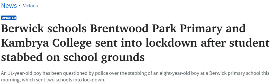 收藏墨尔本校园惊魂!Berwick两所学校紧急封锁!8岁学童在校内被刺,11岁嫌犯涉案