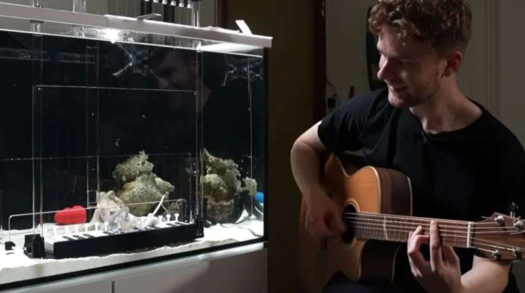 为了让它感受每个音符的特殊震动,Mattias听从专家建议,往鱼缸里放了一个扬声器,可惜这样做并没有什么效果……