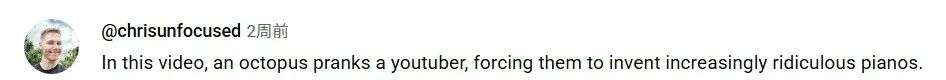 “在这个视频里,一只章鱼整蛊了一位油管博主,强迫他制造出越来越复杂的水下钢琴。”
