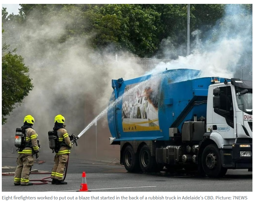 周四上午9点26分,在接到垃圾车回收装置起火的报告后,MFS派出两支消防队共八名消防员赶往Cypress St与Angas St交叉口。南澳警方表示,在消防队员实施灭火作业期间,驾驶员被迫将装载物倾倒在街道中央。