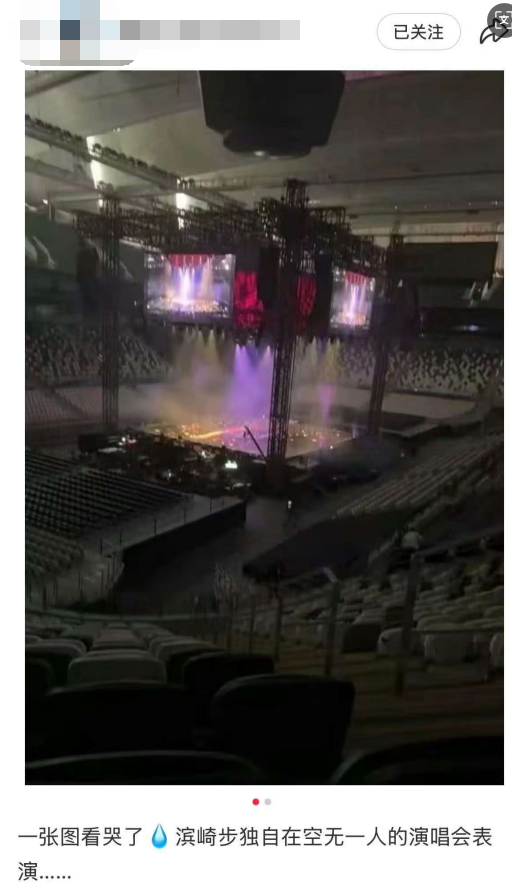 此后,社交平台上流传出滨崎步在空无一人的场馆内表演的消息。