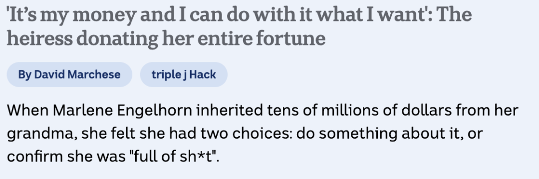 奥地利女继承人玛琳·恩格尔霍恩(MarleneEngelhorn)近日成为全球关注的焦点,因为她正在兑现四年前的承诺,将继承的数千万欧元财产几乎全部捐出!