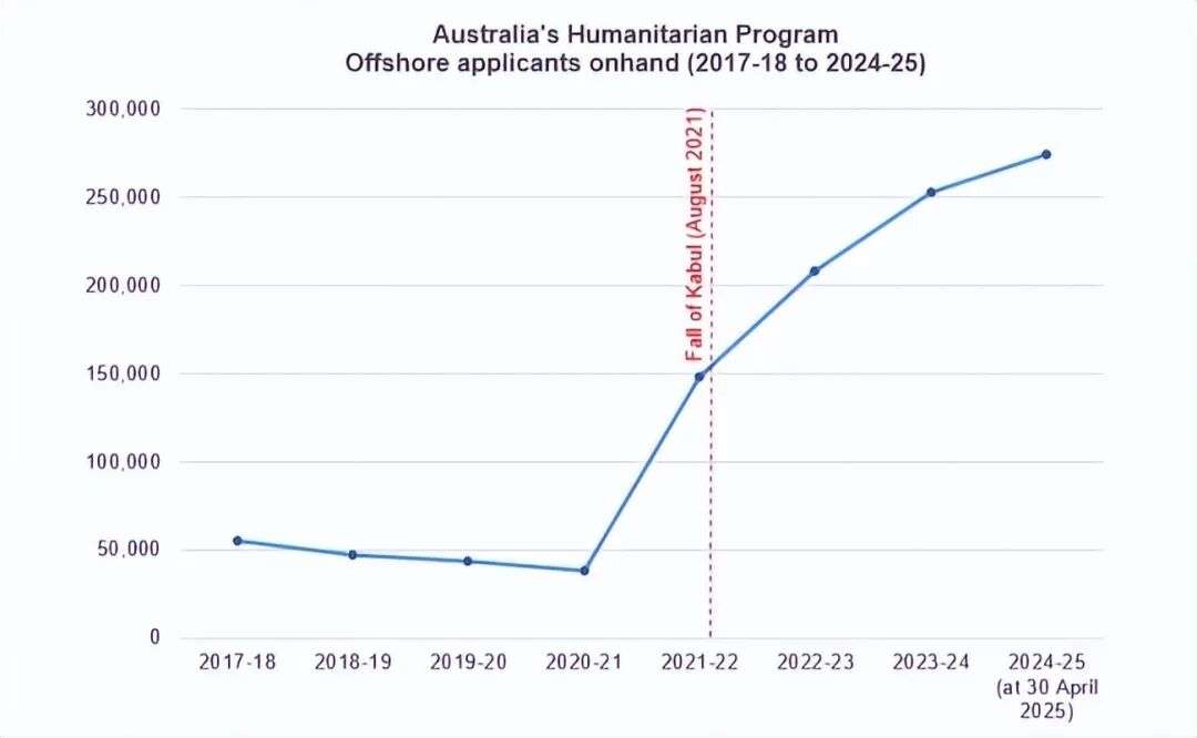 2024-25财年,澳洲的难民配额为2万。联邦政府还承诺,会在2021-22至2025-26财年间,专门为阿富汗难民预留2.65万个名额。