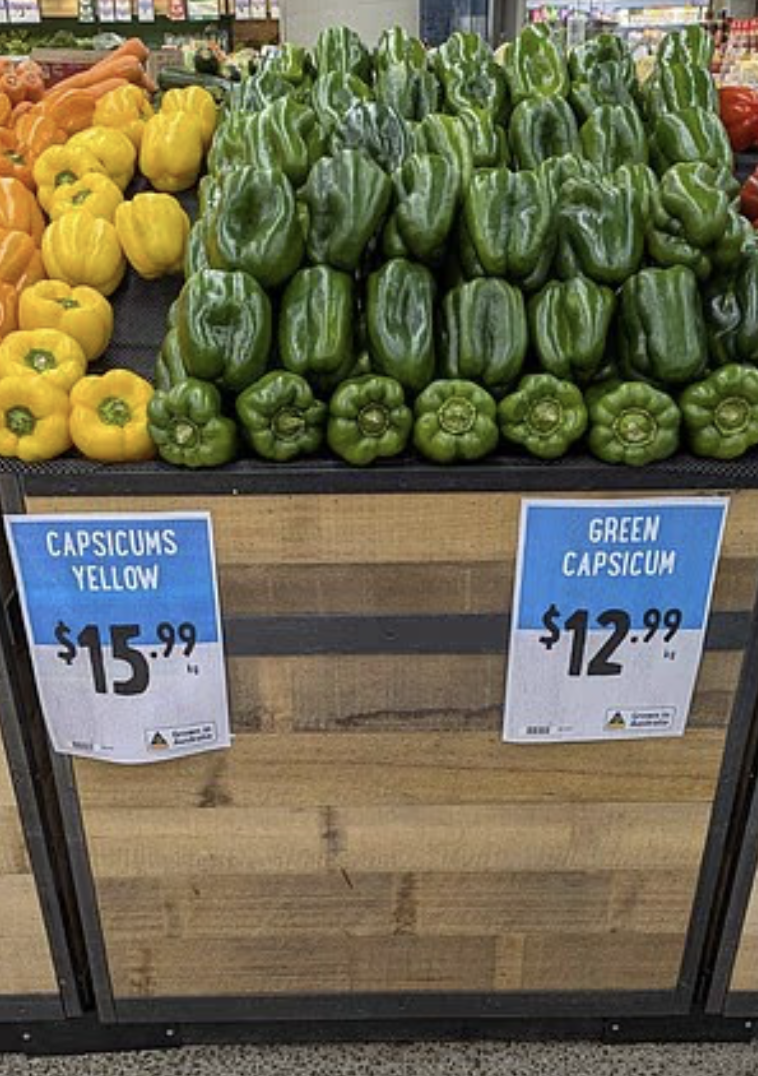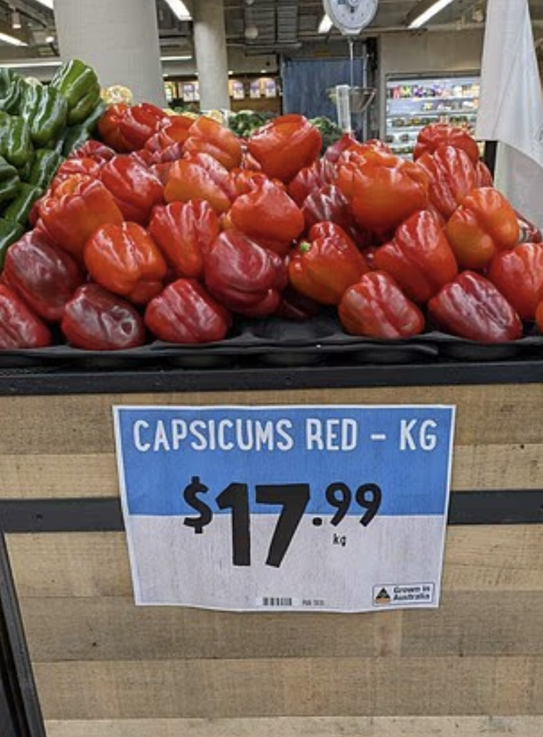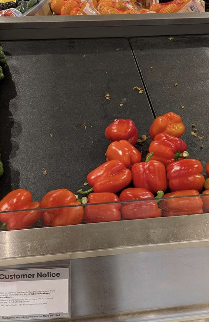 而在悉尼连锁生鲜超市Harris Farm的一家门店,甜椒供应仍然充足,但价格比平时高得多。