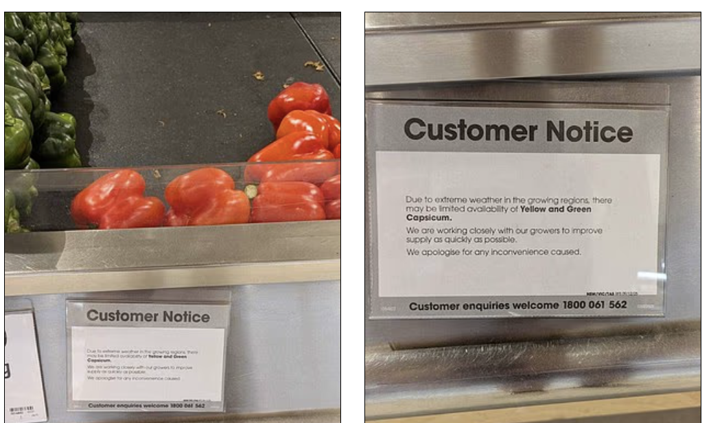 在Coles,甜椒货架旁已经开始出现告示,提醒顾客目前存在预计的供应短缺。