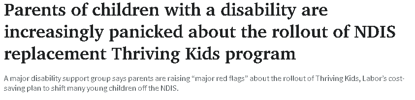 与此同时,澳洲联邦残障部长 Mark Butler 宣布,政府将把部分自闭症儿童从 NDIS 过渡到一个新的 “繁荣儿童计划”(Thriving Kids),预算 20 亿澳元。
