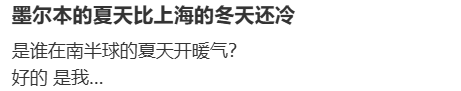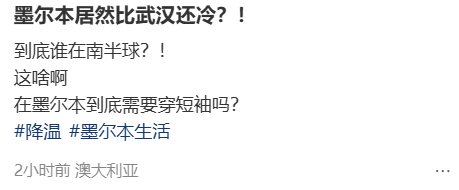 甚至很多网友晒出对比图,直观展示墨尔本的夏天竟然真的比国内的冬天还要冷!