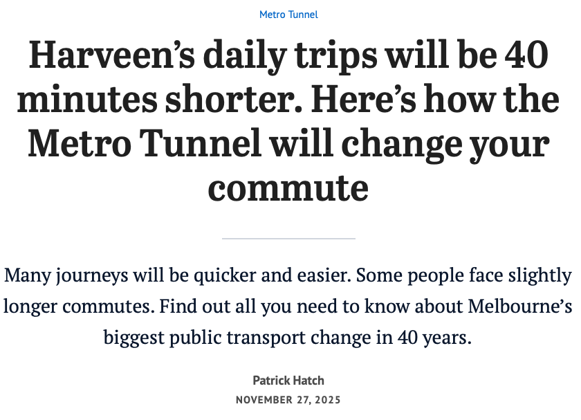 Metro Tunnel的启用是墨尔本向 “真正的地铁系统” 迈进的一步,