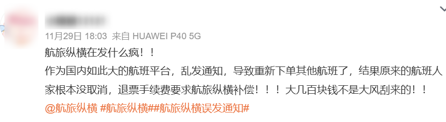 收藏“您的航班已取消!”航旅纵横大面积误发通知,网友:重新下单又退票,求赔偿