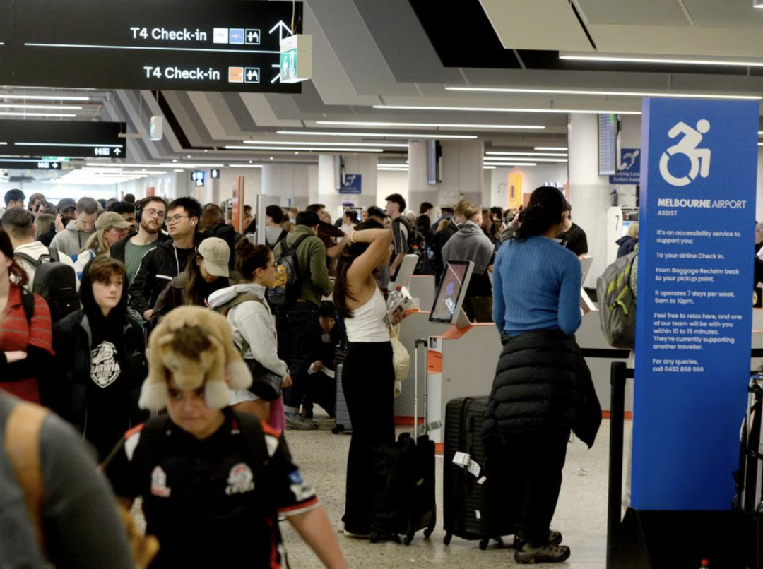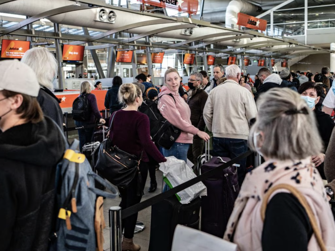 悉尼和墨尔本机场受影响最严重,人潮几乎堆满整个航站楼。