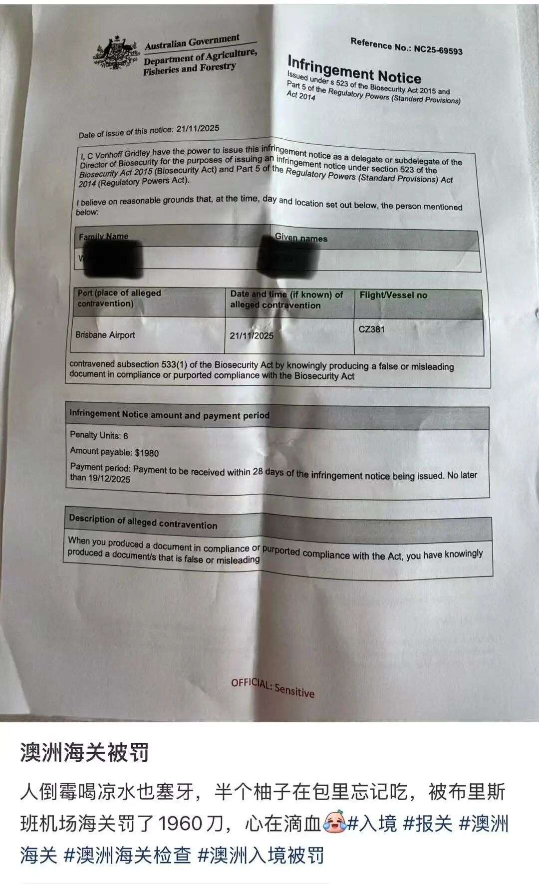收藏大批华人踩雷!澳洲海关疯狂开罚单!一次$1960!原因竟是这个!全澳各大机场同时瘫痪!