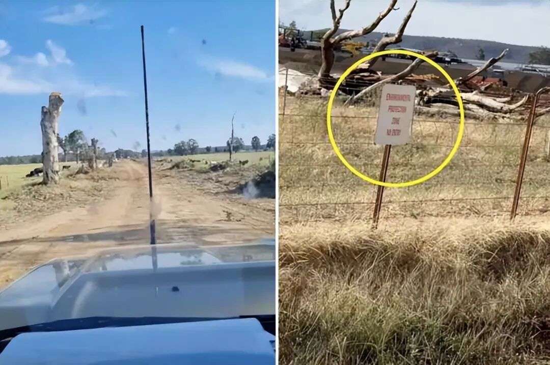 他在社交媒体上发布的视频中痛心疾首:“他们砍掉了Merotherie Road两旁所有的原生树木,破坏范围一直延伸到视线尽头。”