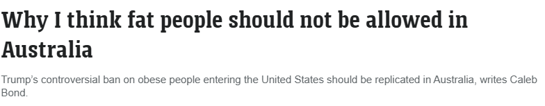 最近,澳洲著名主持人、评论员Caleb Bond公开发表这一争议性观点,呼吁澳洲效仿特朗普的移民政策,对肥胖人群实施入境限制。