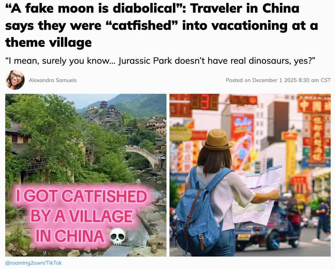 近期,海外一位带娃旅行的博主上传的视频在 TikTok 上火了,原因是她指责自己在中国旅行时被一个村子“骗”了。