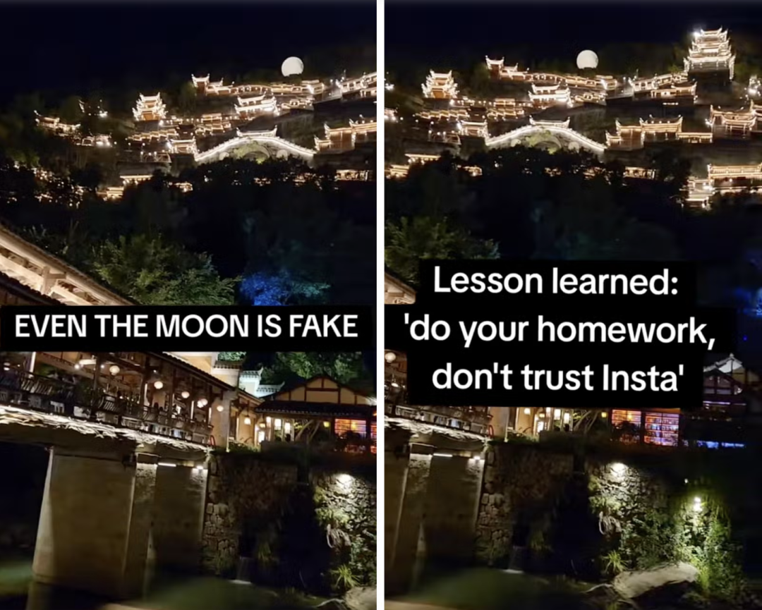 但也有一些网友和博主一样对这种人造景点不买账,吐槽怎么可以连月亮都是假的。