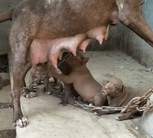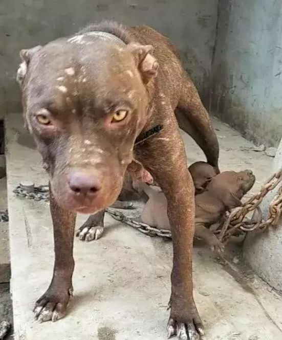 因为频繁哺乳,它的乳头都已经溃烂,这只老狗疼得想逃开,但是冰冷的铁链禁锢着它,根本就没有任何地方可躲。