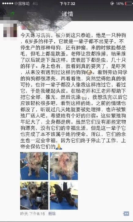 有人在网上发布过一张繁殖犬的图片,他们的毛上都是跳蚤,皮层下都是虫,毛发成团,沾着粪便和血痂,更别提打疫苗和检验检疫了。