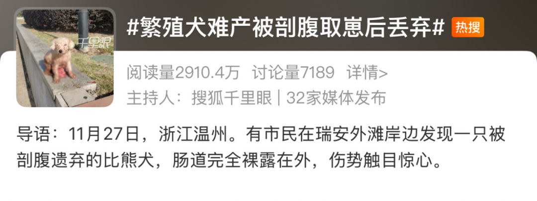 昨天,一则“繁殖犬难产被剖腹取崽后丢弃”的热搜很快引发了全网的讨论。
