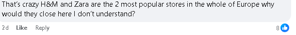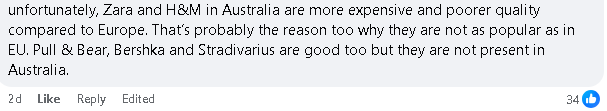太离谱了,H&M 和 Zara 在整个欧洲都是最受欢迎的两大品牌,怎么在澳洲反而要关店?我真的不理解。