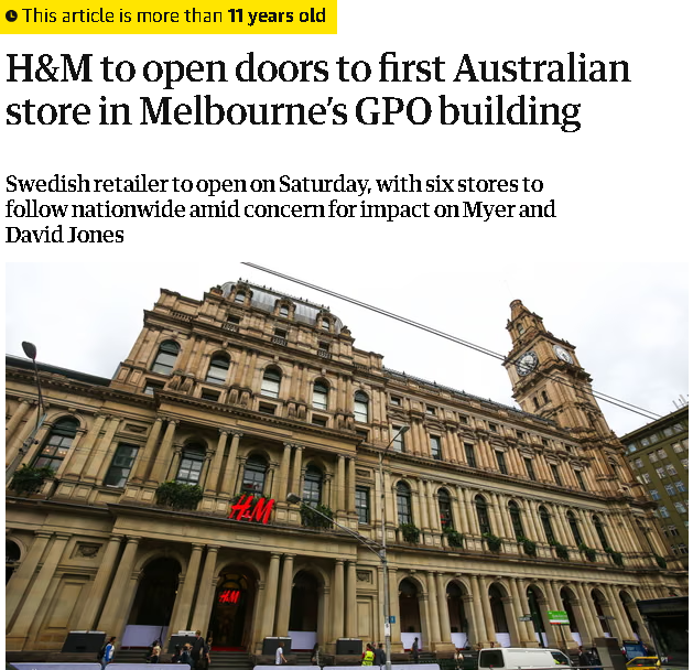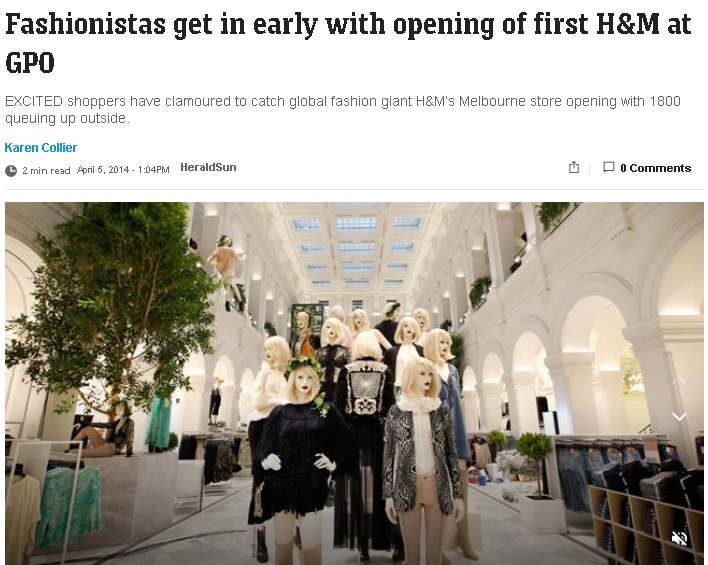 老墨现在都记得,11年前H&M在墨尔本市中心GPO开业时的盛况,各大媒体争相报道:
