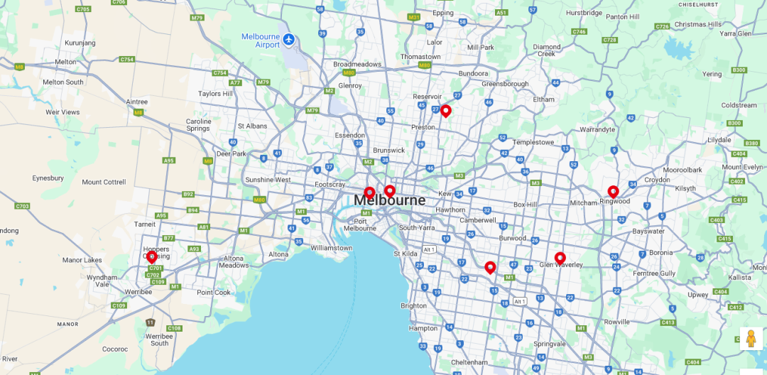H&M目前在墨尔本有7家店,分布在CBD及郊区不同购物中心: