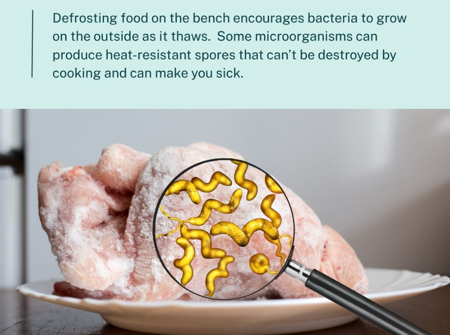 虽然烹饪过程通常可以杀死这些细菌,但如果解冻方式不正确,杀菌效果就无法保证。