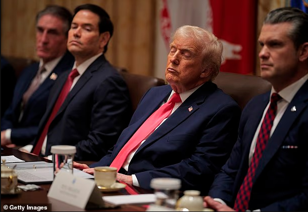 会议期间,川普让每位内阁成员轮流汇报第一年的施政成果,流程冗长,镜头在切换到后排发言人时拍到川普眼皮下垂的瞬间,便立刻被自由派账号放大解读。