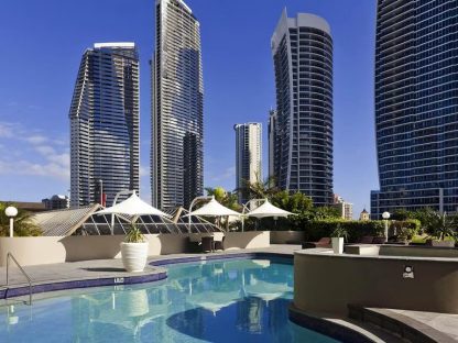诺富特冲浪者天堂酒店 是黄金海岸最大的酒店,拥有 408 间客房,其中包括两间复式顶层套房。酒店配备大型会议设施,以及网球场、泳池和水疗等设备。