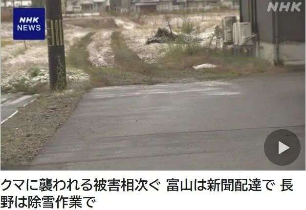 同日,长野县一位78岁的男性在家门前除雪时,也遭到熊袭击,致其脸部和大腿等部位受伤。目前,警方已呼吁附近居民注意安全。