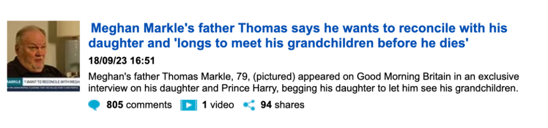 他至今都没机会见到哈里以及阿奇和莉莉贝特,他本人还成了英国媒体八卦头条的常客,被媒体追着跑,又被网友评头论足。
