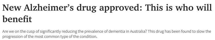 更值得关注的是,今年早些时候另一款新药Kisunla(donanemab) 也获批,意味着澳大利亚首次拥有两种被证实可延缓病程的治疗选择。
