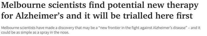 收藏澳洲首创新疗法: 不打针不吃药, 只要喷一喷, 就能逆转老年痴呆, 修复大脑! TGA批准首批新药