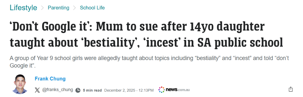 收藏澳洲一中学的讲座竟涉及兽交、乱伦内容!家长愤怒:这不是教育,是侵害!