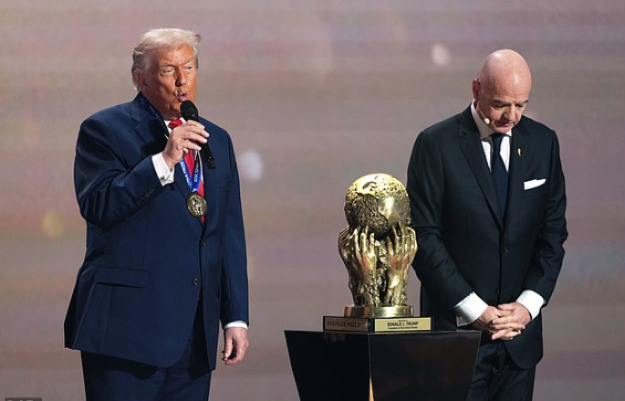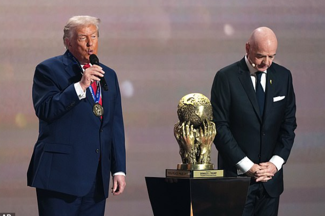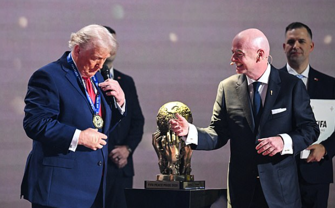抽签过程中最意外的环节,是 FIFA 主席因凡蒂诺颁给特朗普首届“FIFA 和平奖”。巨型奖杯一上台,全场媒体都愣了。
