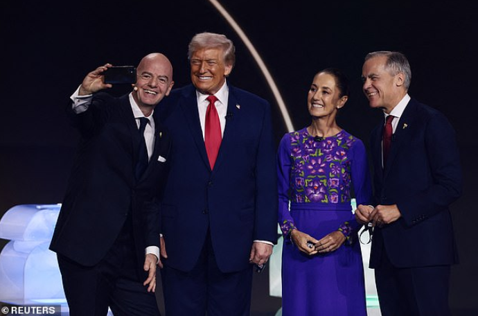 按照惯例,美国、加拿大、墨西哥三国领导人亲自抽出本国签位。墨西哥 → A 组;加拿大 → B 组;美国 → D 组,虽然这是预先安排好的结果,但氛围依旧欢乐。