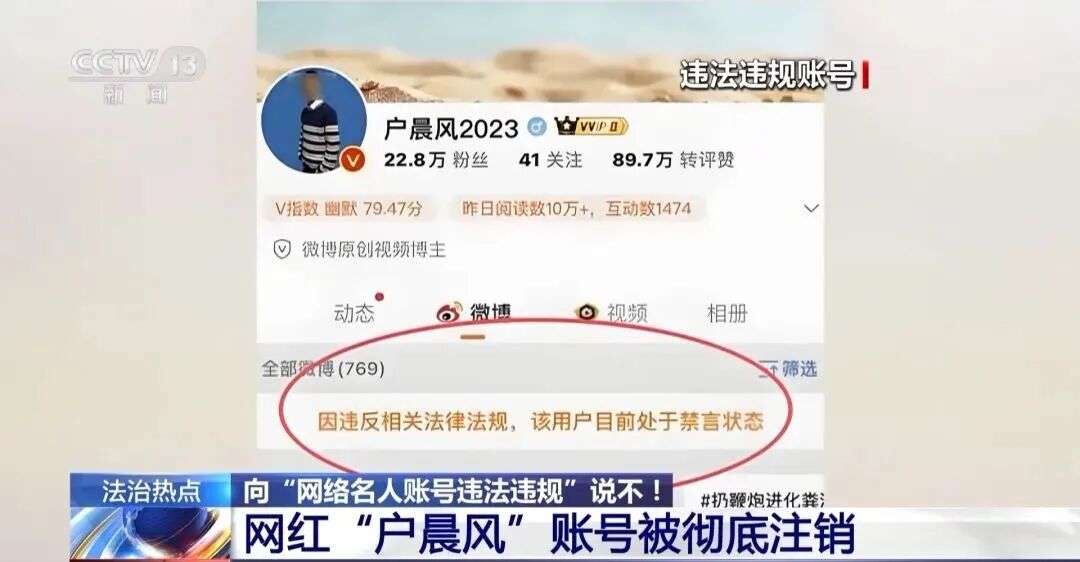 实际上,从展示跨国消费差异到制造阶层对立,户晨风以“苹果、安卓论”收割流量,该账号因突破监管红线被封禁,多平台账号被彻底注销。