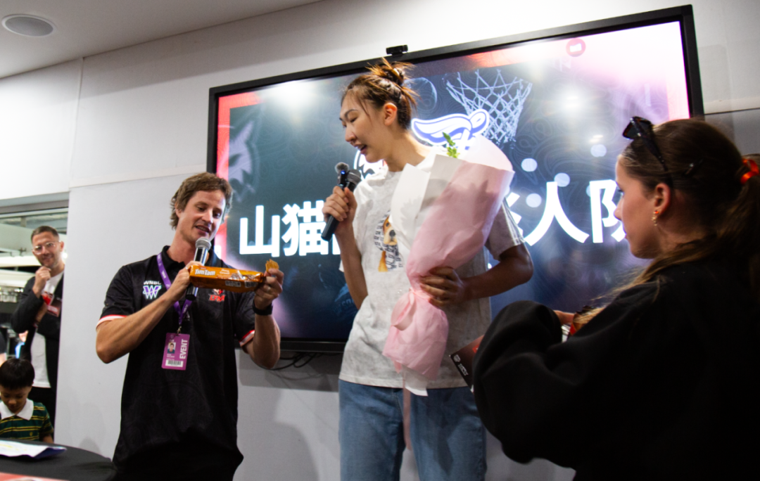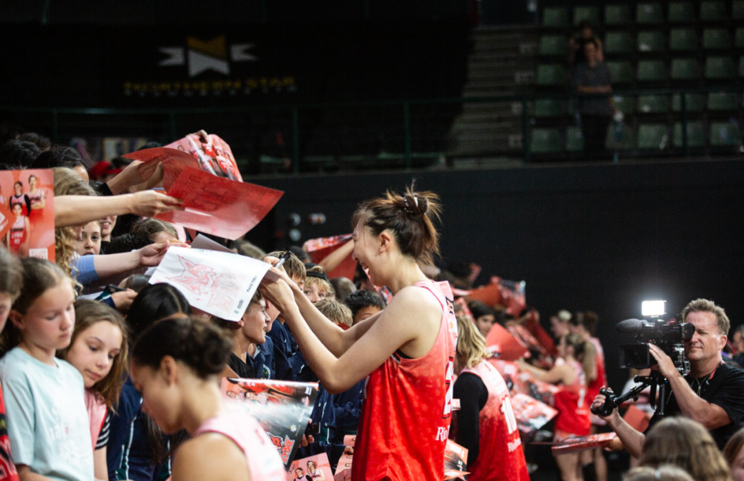 作为本场比赛的焦点,韩旭在赛前接受了WNBL官方的采访,并且与热情的珀斯华社代表们合影。